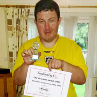Football-mad Guildford client Matthew, received not one but two awards at the recent Guildford City Football Club, Annual Post Season Celebration. Matthew was presented with a crystal glass trophy for outstanding service as a volunteer and a certificate for Best Ball Boy.